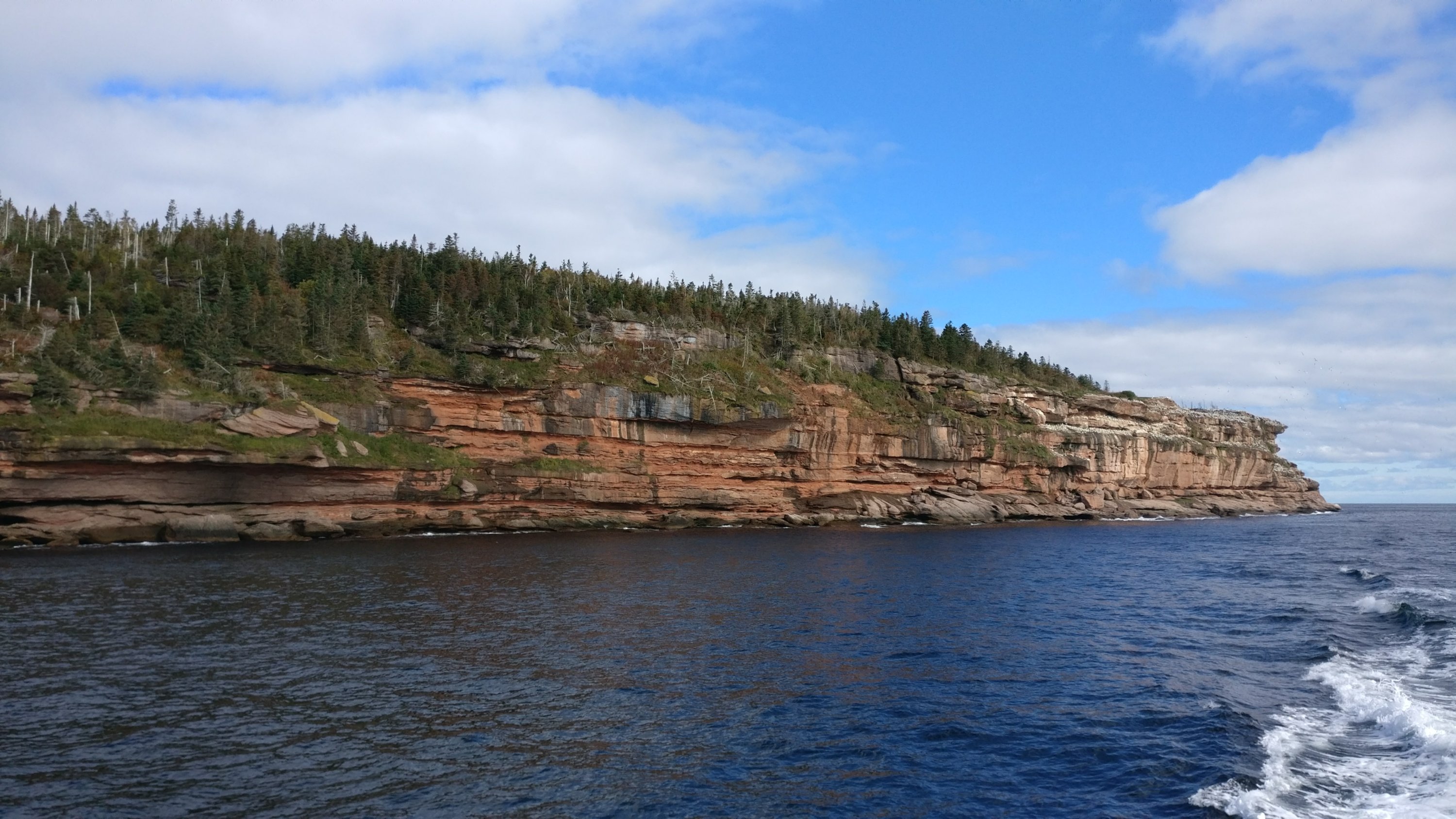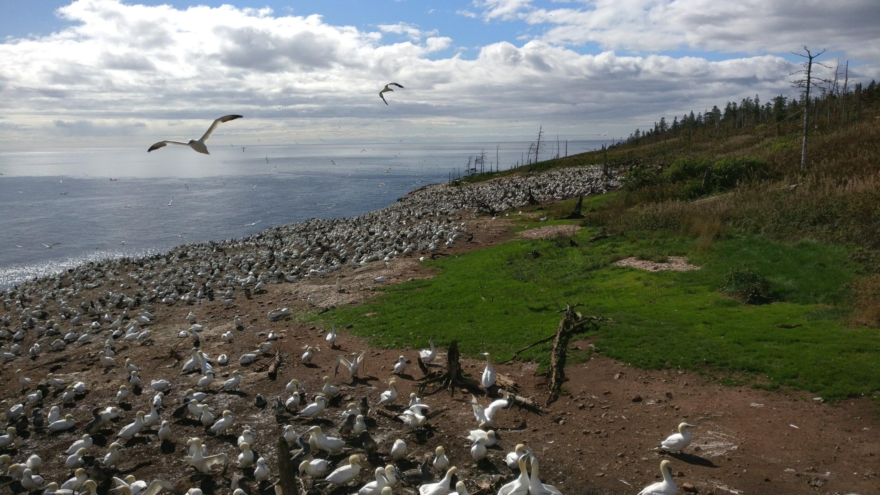 Nous entamons ensuite le contournement de l’île de Bonaventure, où nous avons pu observer pour la première fois la deuxième plus grande colonie de Fous de Bassan au monde. Quelques phoques étaient également présents. Une grande première pour la plupart d’entre nous.